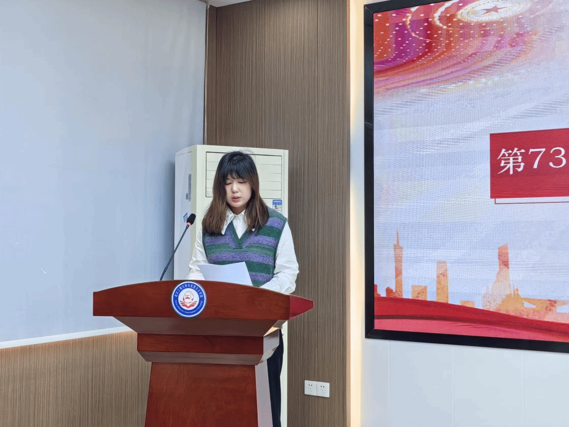仪式第三项,第73期党校新学员代表严沁晗同砚讲话。首先,她表达了对身边党员楷模的敬仰之情以及立志加入中国共产党的拳拳之心。随后,她代表全体新学员亮相,定会以认真的态度看待这次培训,不辜负党组织的信任和作育,在此次培训中周全提升自身素质,在一直的学习和更新知识中提升理论水平,在深入思索和学以致用中铭刻初心和使命,用现实验动誊写无悔青春。