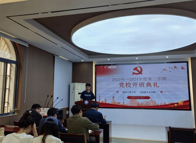 (通讯员:张文志 梁若男)4月22日上午,武汉工程大学党校腾博tengbo9885官网分校在求是楼112报告厅举行2024年春季学期开班仪式。学院院长曹胜亮、学院团委书记、党务做事蔡明广、学院研究生第四党支部书记陶夏和各学生党支部副书记及第73期入党起劲分子培训班、第15期生长工具培训班全体学员加入仪式。仪式仪式由学院党务中心成员张文志主持。