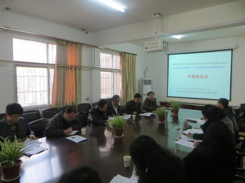 2014Äê12ÔÂ30ÈÕÏÂÖ磬ºþ±±Ê¡½ÌÓýÌü2014Äê¶ÈÕÜѧÉç»á¿ÆÑ§Ñо¿ÖØ´óÏîÄ¿¡°º£ÑóÇ¿¹úÅä¾°ÏÂÖйúÄÜÔ´Çå¾²Õ½ÂÔÑо¿¡±ÔÚѧԺ¾Û»áÊÒÕÙ¿ª¿ªÌⱨ¸æ»á¡£±¨¸æ»áÊÇÆ¾Ö¤½ÌÓýÌüÏà¹ØÎļþÒªÇó¾ÙÐеġ£