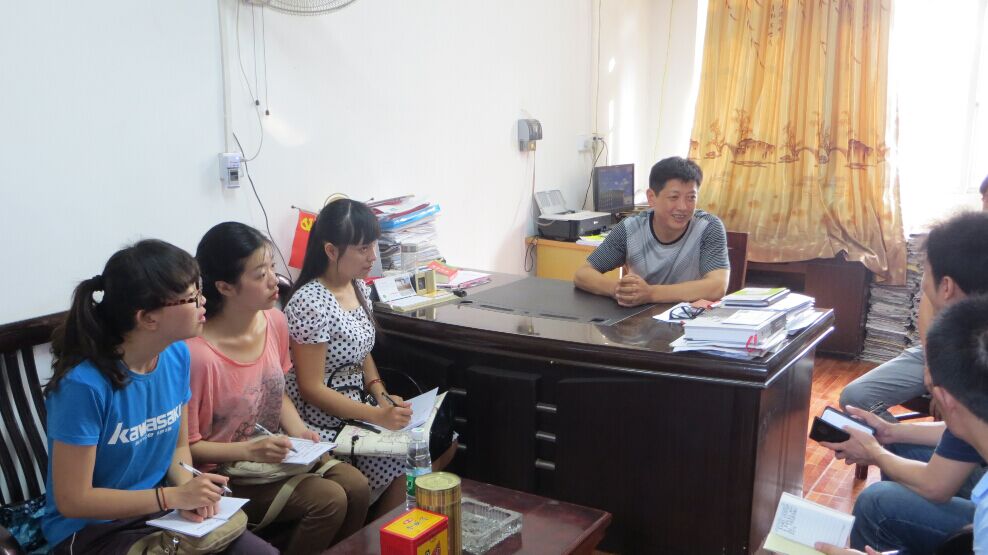 第二支步队有沈娟、赵旭颖、朱文娟、曾思齐、王广振、涂亚腾、邱宇冰、卫龙8名研究生加入,赴赤壁镇加入了“武汉工程大学头脑政治教育实践基地”挂牌仪式并开展暑期社会实践运动,主题是“中国梦——构建社会主义协调社会”。学校组织人事部孔海霞副部长、研究生处叶健副处长、学院向导吴秋凤、舒先林、何景春、杨克一律加入挂牌仪式并对实践运动提出了指导性意见和基本要求。调研实践时代,实践队在向导员王东方先生向导下走访了两校三村。在赤壁镇镇中心中学和镇中心小学开展访谈,以相识农村基础教育的现状为主,另外就农村法制建设、远程教育等举行现实视察;在九毫村、周郎嘴村、青山村,不但与村委会干部举行座谈,还深入到农民生产劳动的场合和农户家中举行面扑面的交流,对新农村党建、农村经济生长、农民心中的中国梦、农村文化等举行了调研。时代,赤壁市电视台对学院暑期实践队举行了跟拍摄像并作了专题新闻报道。