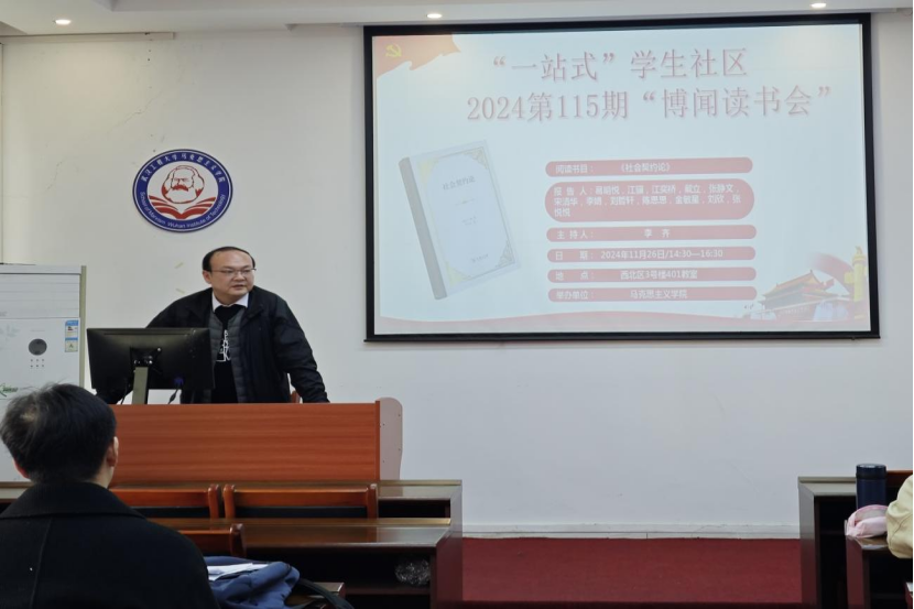 (通讯员:张悦悦) 11月26日下昼,我院第115期“博闻念书会”在腾博tengbo9885官网一站式学生社区中心(求是楼401课堂)顺遂召开。本次念书会的主题为社会左券与民主政治,同砚们围绕着卢梭的著名政治哲学著作《社会左券论》睁开讨论。本次念书会由李齐先生主持。加入此次念书会的12位研究生主讲人划分为葛明悦、江冀、江奕桥、戴立、张静文、宋清华、李娟、刘哲轩、陈思思、金敏星、刘欣、张悦悦。院学术部“博闻念书会”运动小组组织了此次念书会。