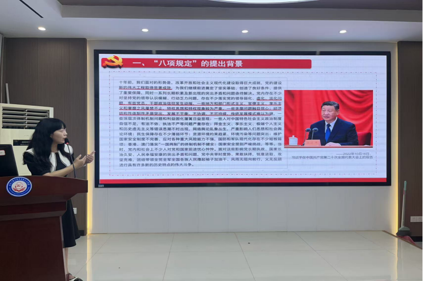 在运动历程中,研究生第二党支部李娟同志以“共筑边疆梦”为主题,向导学习习近平总书记给谢依特小学戍边支教西部妄想自愿者服务队队员的回信,让我们真切感受到中华民族各人庭的温暖与力量。教工第一党支部董苾茜同志教学微党课《深刻意会八项划定和八项划定精神的富厚内在》,董苾茜同志提出,我们既要通过理论学习筑牢头脑防地,更要在实践中磨炼自律品质。教工第二党支部胡秋梅同志教学微党课《深入学习贯彻中央八项划定精神,一直增强新时代党的作风建设》。胡秋梅同志指出,中央八项划定,是周全从严治党的要害制度,充分彰显了党的自我革命精神。中央八项划定从细微处入手,直击作风问题焦点,展现出党自我刷新的坚定刻意,是党员干部的行为准则,也是我们青年学子的行动指引。