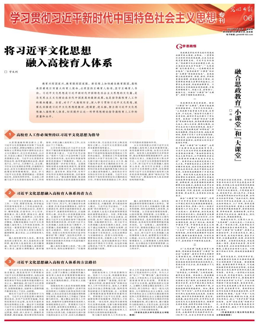 ±¾ÍøÑ¶£¨Í¨Ñ¶Ô± Ùܾý«]£©ÎÒÔºÎ÷ϯÇñ·åÔÚ¡¶×ÆË¸ÈÕ±¨¡·£¨2025Äê8ÔÂ21ÈÕ06°æ£©ÉϽÒÏþÀíÂÛÎÄÕ¡¶ÈÚºÏ˼Õþ½ÌÓý¡°Ð¡¿ÎÌᱺ͡°´ó¿ÎÌᱡ·¡£