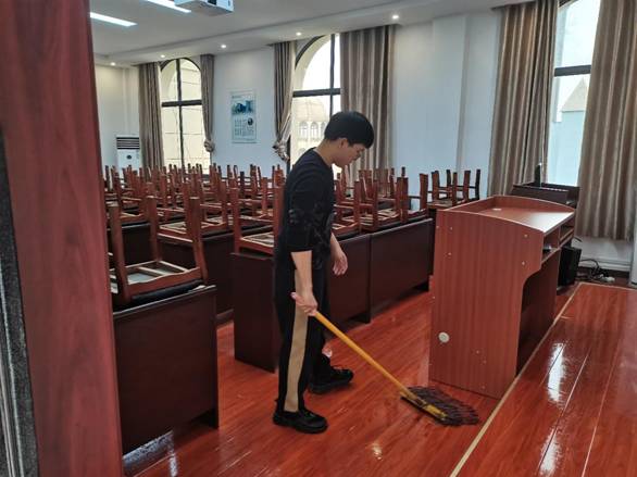 只管细雨绵绵,自愿者们仍自觉在腾博tengbo9885官网门口荟萃,对我校西北区二号楼自习室举行清扫。整个运动历程中,每一位自愿者专心加入,发挥不怕脏、不怕累的精神,获得同砚们高度赞扬和勉励。