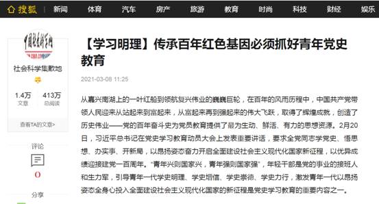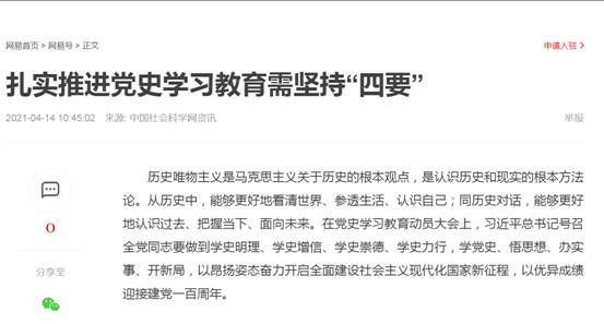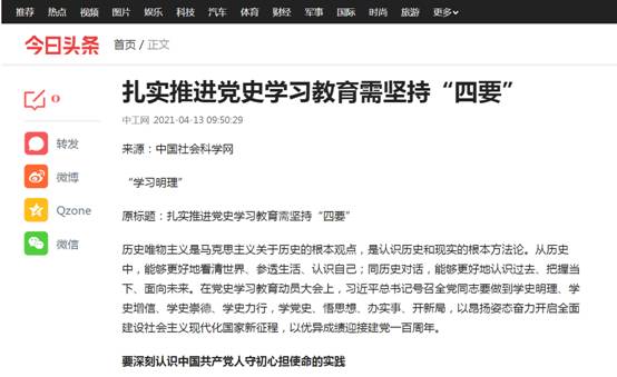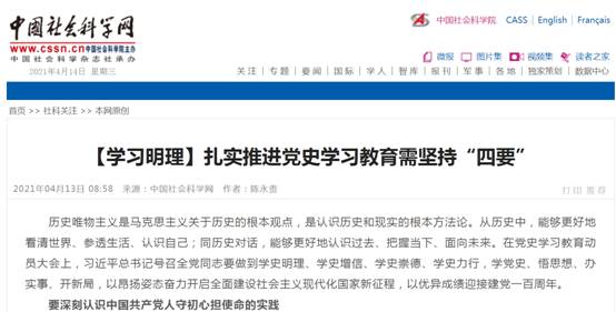 (通讯员 金诗灿)中共中央决议开展党史学习教育主题运动以来,我校腾博tengbo9885官网迅速响应党中央招呼,凭证学校安排,起劲组织西席开展党史教育专题学习运动,组织西席撰写文章,深入研究党史及怎样开展党史教育,在《中国社会科学网》等多家主流网站揭晓文章。操菊华教授撰写了《传承百年红色基因必需抓好青年党史教育》(http://ex.cssn.cn/zx/bwyc/202103/t20210308_5316182.shtml),陈永贵博士撰写了《扎实推进党史学习教育需坚持“四要”》(http://ex.cssn.cn/zx/bwyc/202104/t20210413_5325923.shtml)。文章揭晓后,被搜狐、网易、中国历史研究网及今日头条等客户端转发,爆发了起劲影响。