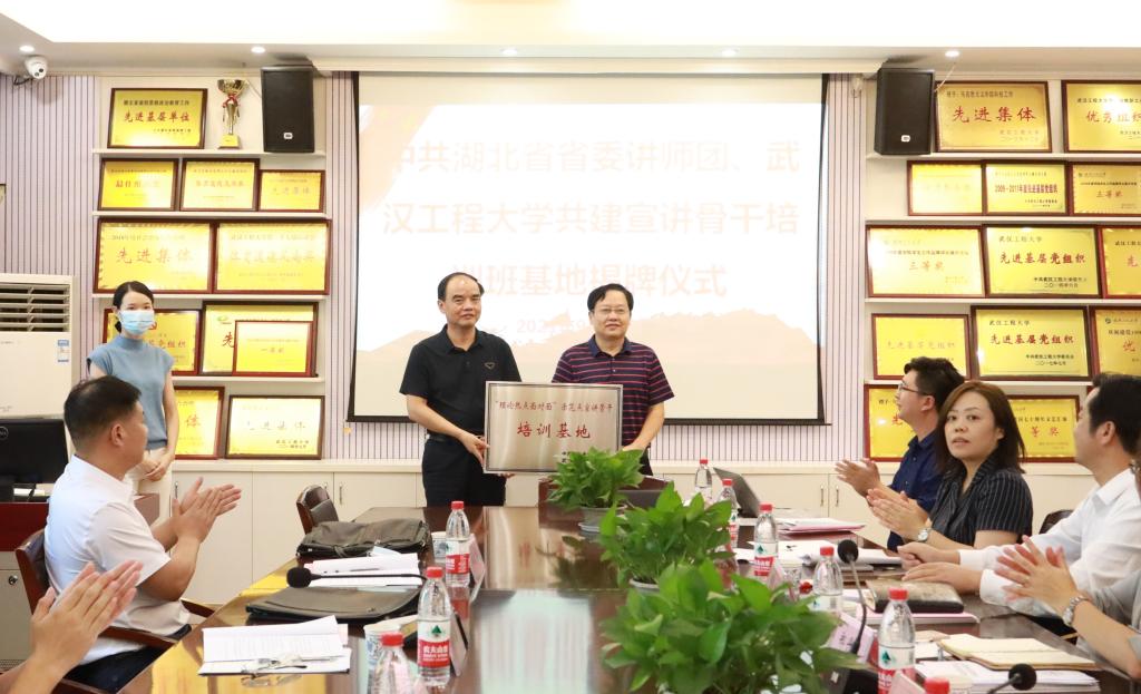 随后,举行中共湖北省委讲师团、武汉工程大学共建宣讲主干培训基地的授牌仪式。在省校向导、嘉宾的见证下,舒先林从胡秋春手中接过“沉甸甸”的牌匾。