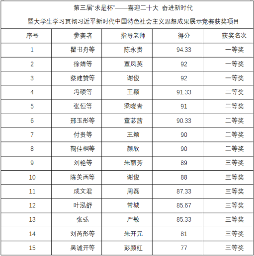 最后经由评委先生们的评选打分,由主持人王梦涵宣布了角逐获奖名单,本次决赛共评选出一等奖3名,二等奖5名,三等奖7名。颁奖竣事后,评委先生与获奖同砚合影留念,宣告了“求是杯”决赛圆满竣事。(审稿 常城)