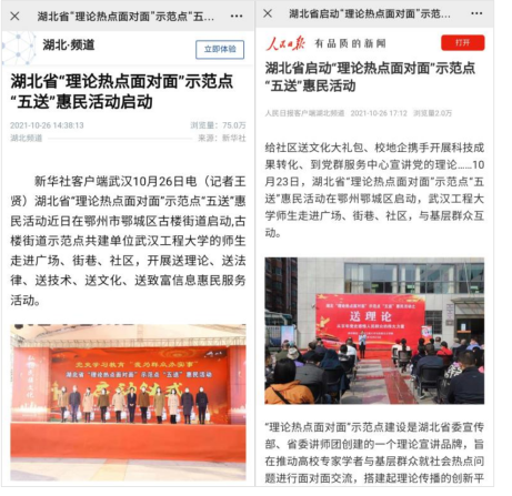 2021Äê10Ô£¬ÎÒУÔÚʵ¼ù»ùµØÀֳɾÙÐÐȫʡ¡°ÎåËÍ¡±»ÝÃñÔ˶¯Ê×·¢ÒÇʽ¡£»ÝÃñÔ˶¯Êܵ½ÍâµØÈºÖÚÈÈÁÒ»¶Ó£¬±»ÈËÃñÈÕ±¨¡¢Ð»ªÉç¡¢ºþ±±ÈÕ±¨ºÍºþ±±µçÊǪ́µÈÖ÷Á÷ýÌåÆÕ±é¹Ø×¢ºÍ±¨µÀ¡£