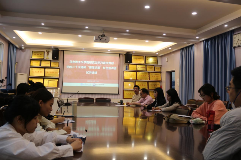 £¨Í¨Ñ¶Ô±£ºÁºÈô ÄвÜËÉ£©Îª³ä·ÖÑéÕ¹Âí¿Ë˼Ö÷ÒåÀíÂÛѧ¿ÆÓÅÊÆ£¬ÈÃÇàÄêѧ×Ó×Ô¶¯×ß³öȥѧϰÐû´«¹á³¹µ³µÄ¶þÊ®´ó¾«Éñ£¬11ÔÂ11ÈÕÏÂÖ磬ѧԺÔÚ207¾Û»áÊÒ¾ÙÐÐÑо¿ÉúѧϰÐû´«¹á³¹µ³µÄ¶þÊ®´ó¾«Éñ¡°²©ÎÅÇóÊÇ¡±ºìÉ«Ðû½²ÍÅÊÔ½²Ñ¡°ÎÔ˶¯¡£Ôºµ³Î¯¸±Êé¼Ç¡¢¸±Ôº³¤£¨¼æ£©³Â¿¡£¬ÀíÂÛÐû½²ÖÐÐÄÖ÷ÈÎÍõÍþ£¬Ñ§ÔºÍÅίÊé¼Ç²ÌÃ÷¹ã×÷ΪÆÀί¼ÓÈëÔ˶¯¡£