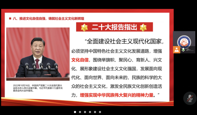 µÚÎåÏ֧²¿¸±Êé¼Ç²ÜËÉͬ־Ϊ¸÷È˽ÌѧÌâΪ¡¶¼á¶¨ÎÄ»¯×ÔÐÅ×ÔÇ¿Æ×дÐÂÕ÷³ÌÎÄ»¯ÐÂÆªÕ¡·µÄ΢µ³¿Î£¬ËûÍŽᵳµÄ¶þÊ®´ó±¨¸æÖÐϰ½üƽ×ÜÊé¼Ç¹ØÓÚÎÄ»¯½¨ÉèµÄÖ÷ÒªÐðÊö£¬¸ø¸÷È˽ÌѧÁËÎÄ»¯½¨ÉèµÄÖ÷ÒªÐÔÒÔ¼°ÍƽøÎÄ»¯×ÔÐÅ×ÔÇ¿¡¢Öý¾ÍÉç»áÖ÷ÒåÎÄ»¯ÐÂѤÀõĻù´¡ÒªÇó¡¢×ÜÌå×ö·¨ºÍÏêϸ²½·¥¡£ËûÖ¸³ö£¬ÔÚÖйú¹²²úµ³µÄÍçÇ¿Ïòµ¼Ï£¬ÖлªÃñ×åÒ»¶¨»á´´ÔìÖйúÎÄ»¯ºÍÖйúÉç»áÉú³¤µÄÐÂѤÀã¡