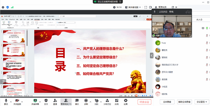 常城副院长指出,理想信心是中国共产党能够战胜艰难险阻,向导中国人民创造新中国的顽强意志,也是中国共产党能够恒久执政并获得人民群众拥护的精神英华,树立坚定的共产主义理想信心是及格共产党员的基本要求。其次,在怎样坚定自己的理想信心方面,常城副院长以坚持从理论学习中、坚持从知史明史中、坚持从践行宗旨中、坚持从对标先进中、坚持从做事创业中等“五个坚持”深入剖析共产党员坚定理想信心的要领途径,这是对共产党员怎样坚定理想信心最好的诠释。