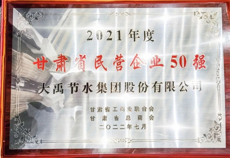 2022年7月4日6t体育节水集团荣获2021年度甘肃省民营企业50强