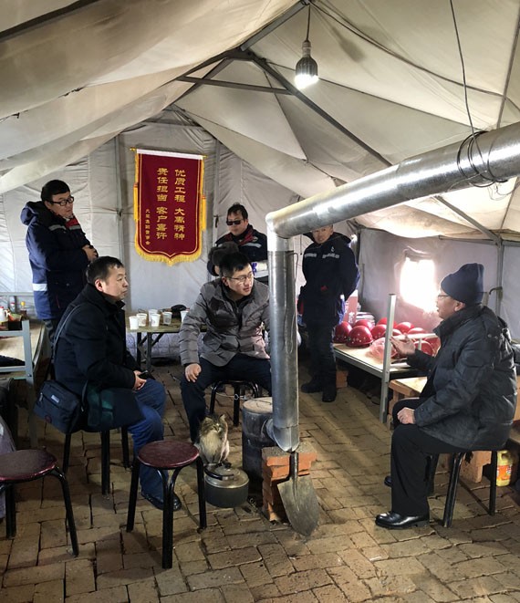 天天早晨,陪同着阵阵冷气,项目施工职员用从远处打来的带着冰碴的水,草草的洗漱事后就最先了新的一天的事情。从驻地到施工现场,多为过膝深的积雪,就是这样的路途,项目施工职员天天要走好几里。他们认真检查每个装备的零部件,严酷每一道施工程序,举行装备装置、管道检查。他们心里只有一个念头:白天一定要把事情做细、做扎实,保质保量、保进度。白天凭证施工进度,完成施工使命,才华享受一个“优美”的夜晚,由于不必在夜里加班,想象一下这样的天气在夜里加班是个怎么样的滋味,而这样的滋味他们也是经常要品尝的。