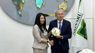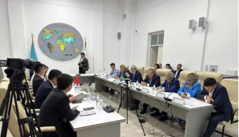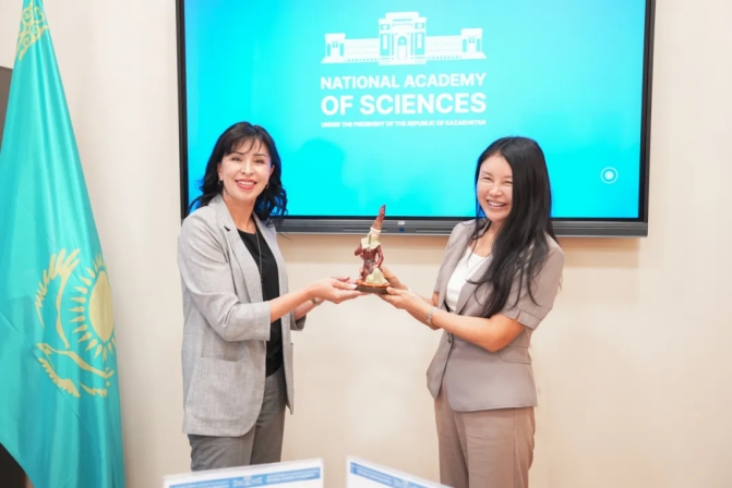 代表团应邀参访了哈萨克斯坦国家科学院,一同参访的尚有中国驻阿拉木图副总领事张伟先生。哈萨克斯坦国家科学院副院长ЕРАЛИЕВА Ляззат Тасболатқызы 女士和秘书长ТОҚБЕРГЕНОВ Исмаил Тасанбиұлы先生等热情接待了参访团。