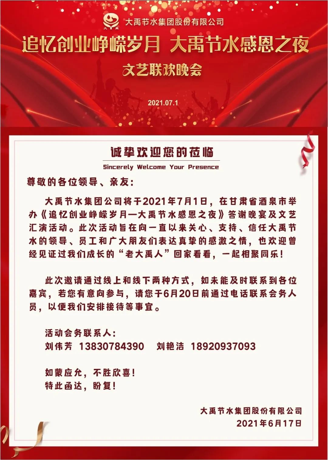 真挚约请| 追忆创业峥嵘岁月—6t体育节水感恩之夜约请函