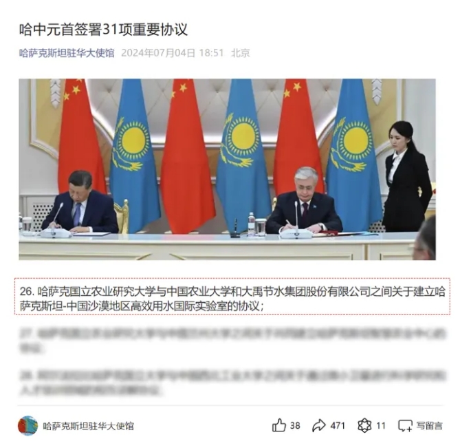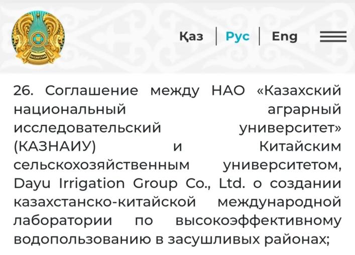 ±ðµÄ £¬Á½¹úÔªÊ׵ļû֤Ϡ£¬Ë«·½´ú±íÍÅÇ©ÊðÁË31ÏîÖ÷ҪЭÒé¡£ÆäÖÐ £¬µÚ26ÏîΪ¹þÈø¿Ë¹úÁ¢Å©ÒµÑо¿´óѧÓëÖйúũҵ´óѧºÍ6tÌåÓýÖ®¼ä¹ØÓÚ½¨Éè¹þÈø¿Ë˹̹-ÖйúɳĮµØÇø¸ßЧÓÃË®¹ú¼ÊʵÑéÊÒµÄЭÒé¡£
