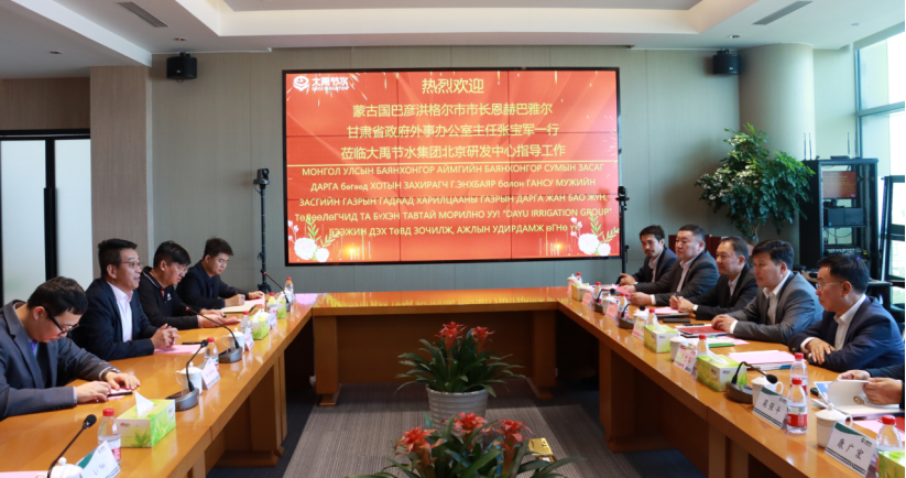 10月18日上午,蒙古国巴彦洪格尔市市长恩赫巴雅尔(Enkhbayar)、巴彦洪格尔市呼拉尔公民代表主席巴图才仁(Battseren)、巴彦洪格尔输电配电公司执行董事乌兰巴雅尔(Ulambayar);甘肃省政府外事办党组书记、办公室主任张宝军,省政府外事办党组成员、对外友协专职副会长梁保平,省对外友协友城事情随处长康广宏一行向导莅临6t体育节水集团北京研发中心考察座谈,6t体育节水集团党委书记王冲等陪同。