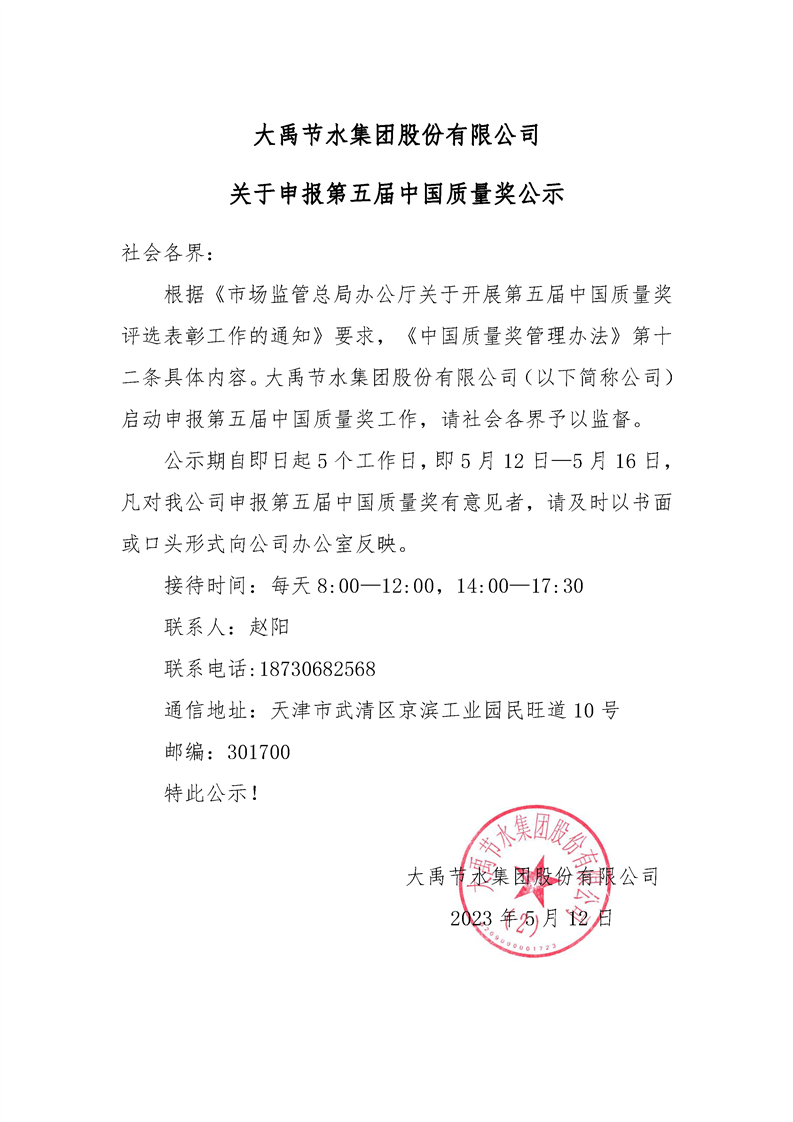 6t体育关于申报第五届中国质量奖公示