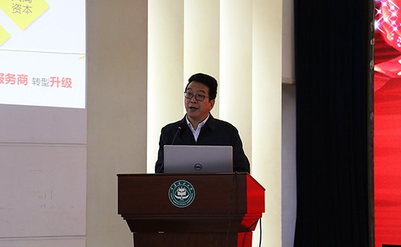 ▲ 6t体育节水集团公司党委书记王冲向与会师生作专题报告