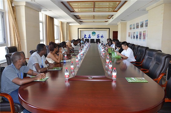 6t体育节水(天津)有限公司常务副总司理潘钰、6t体育研究院副院长战国隆等公司向导陪同刘媛副处长及吉布提共和国官员一行在聚会室召开座谈会