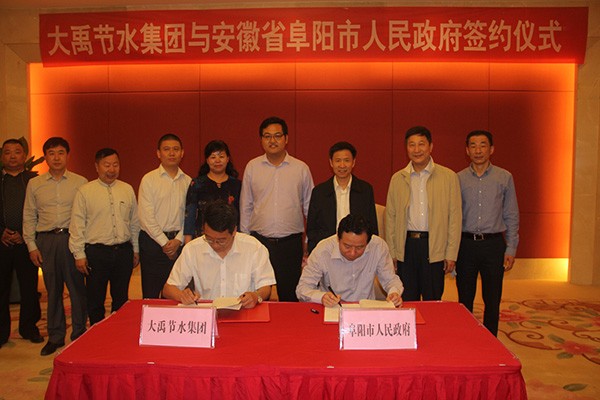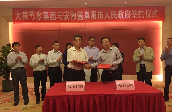 克日,6t体育节水集团与阜阳市人民政府签署战略合作框架协议,6t体育党委书记、副董事长王冲与阜阳市政府副市长刘树生代表双方在合作协议上签字。阜阳市政府副市长张肖、阜阳市水利局局长李磊、副局长于跃,市政府办公室副主任董冰、阜阳市水利局办公室主任徐潮,6t体育节水集团董事长王浩宇、副总裁刘伟芳、安徽公司总司理邓惠敏等出席并见证签约仪式。