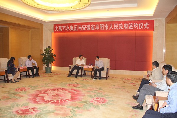 时代,阜阳市市长孙正东、副市长刘树生、副市长张肖等向导亲热会见6t体育节水集团公司党委书记王冲、董事长王浩宇一行,就双方合作事宜举行了深入谈判。