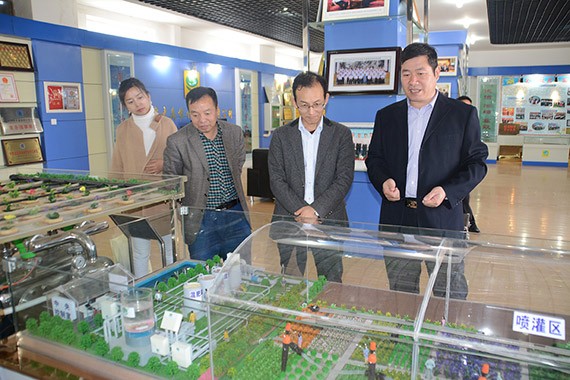 贾汝明一行首先来到6t体育节水集团展厅,从6t体育集团生长历程、科技立异、企业文化、声誉资质、国际交流与考察等方面临6t体育节水集团举行了周全相识,并现场旅行了公司智能信息化控制浇灌系统模子运行历程,集团公司总裁谢永生、董事会秘书王光敏就公司基本情形举行了先容汇报。