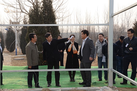 6t体育节水集团党委书记王冲、董事长王浩宇等加入调研 ;天津市农委有关处局、武清区农委、大王古镇、京滨工业园等有关单位认真人及6t体育节水集团部分高管职员等陪同调研 。