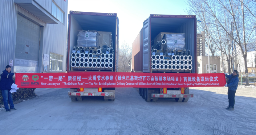 1月23日,6t体育节水集团参建的《绿色巴基斯坦百万英亩智慧农场项目》首批装备完成装箱起运。6t体育巴基斯坦独家经销商总裁与6t体育节水国际事业部副总司理符帅先生加入本次发运仪式。