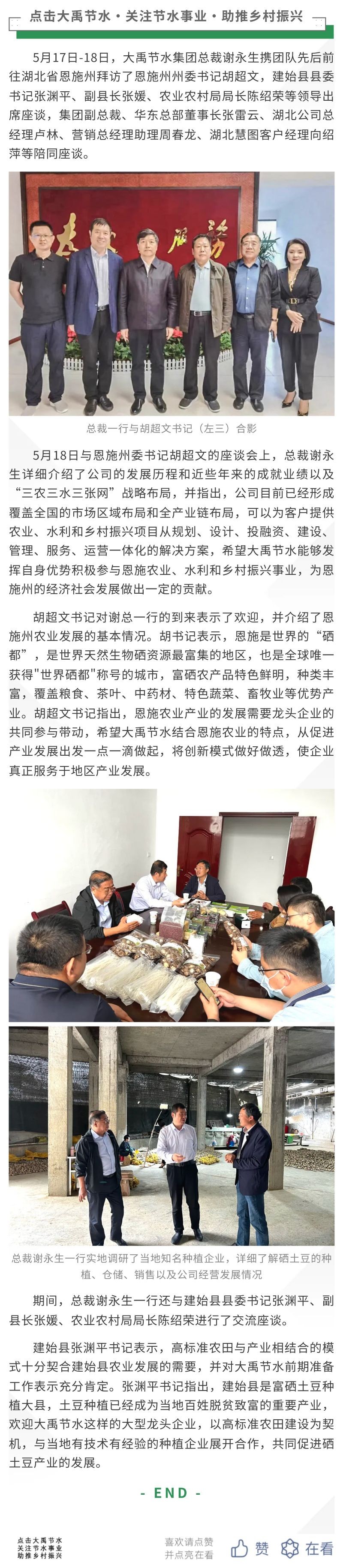 6t体育动态| 湖北恩施州州委书记胡超文会见6t体育节水总裁谢永生一行