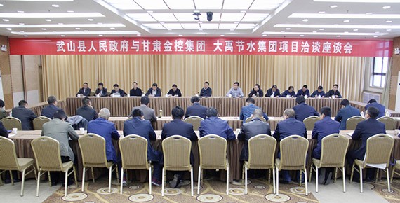 10月11日,甘肃省金控集团、6t体育节水集团公司与甘肃省天水市武山县人民政府在武山县聚会中心举行"武山县五万亩农田高效节水项目座谈会" 。甘肃省金控集团董事长李晓安、武山县县委副书记、县长马勤学、6t体育节水集团公司董事长王浩宇出席座谈会并讲话,武山县委副书记闫斌主持座谈会。