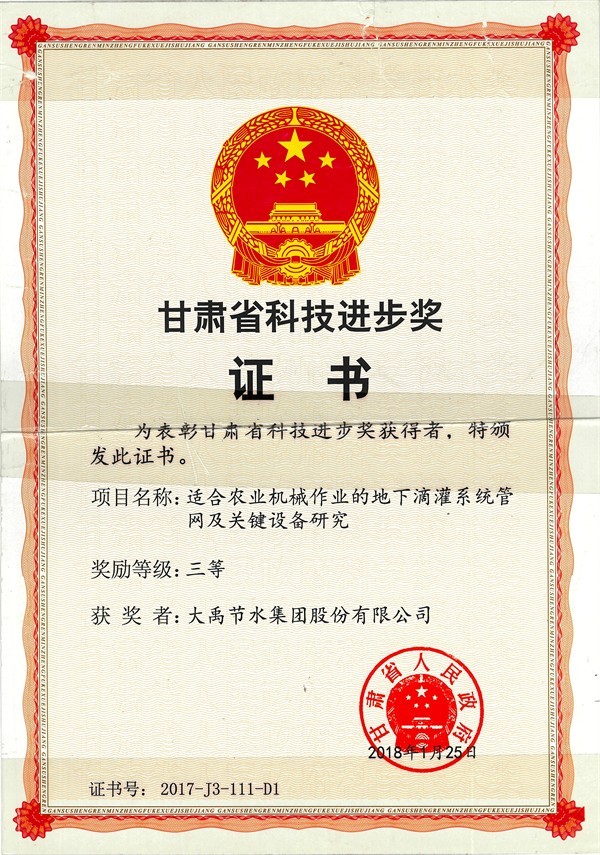 甘肃省科学手艺前进三等奖