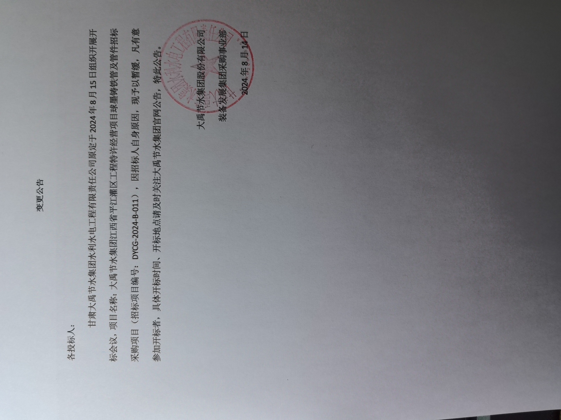 6t体育因谋划生长需要,对6t体育节水集团江西省平江灌区工程特许谋划项目球墨铸铁管及管件举行果真招标采购,真诚欢迎切合条件的供应商前来投标。
